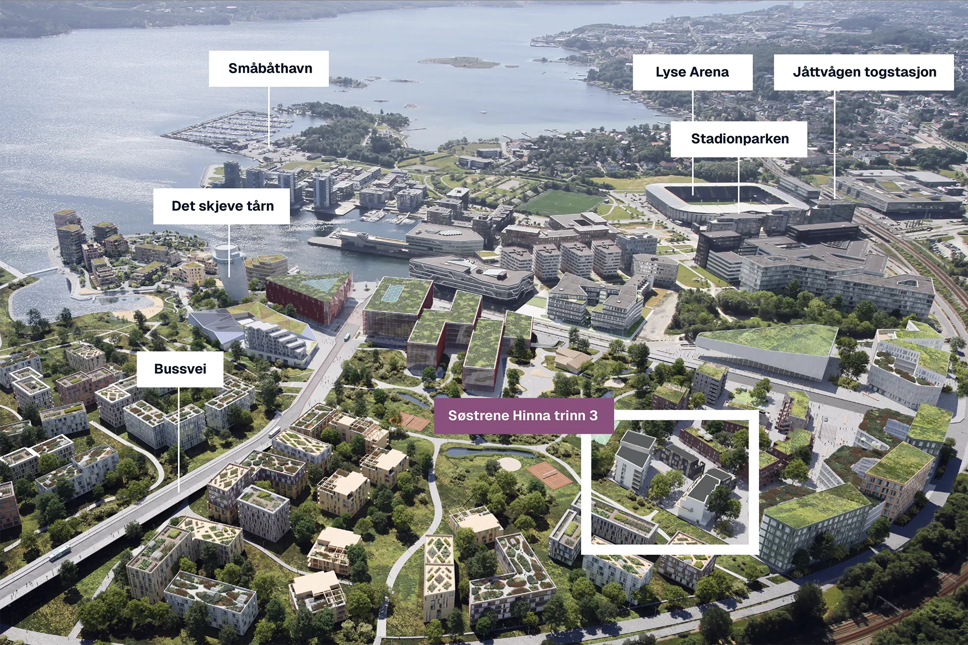 Søstrene Hinna kombinerer grønne omgivelser med sentral beliggenhet på en helt unik måte. Park, fjord, turstier og sykkelveier ligger rett i nærheten, mens bussvei (ferdig i 2026), togstopp, kjøpesenter og spisesteder finnes i nabolaget. For deg som også ser leilighetskjøpet i et langsiktig perspektiv, vit at Hinna Park rommer flere tusen arbeidsplasser – noe som gjør beliggenheten attraktiv for mange som ønsker å flytte nærmere jobben.
